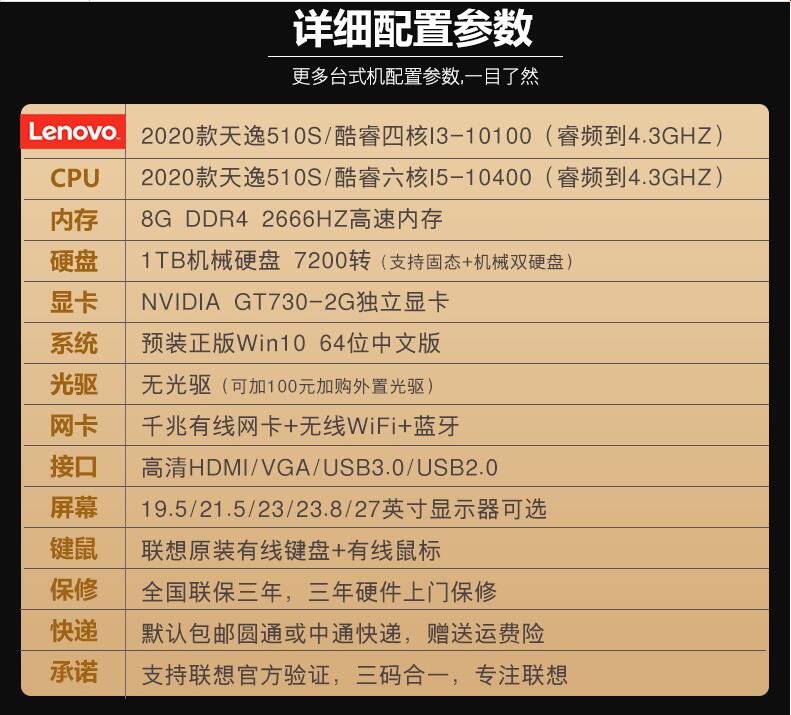 聯(lián)想臺式機電腦天逸510S/510PRO 十代六核I5-10400/四核I3 家用辦公商用財務(wù)炒股網(wǎng)課游戲設(shè)計全整套迷你主機