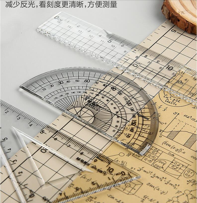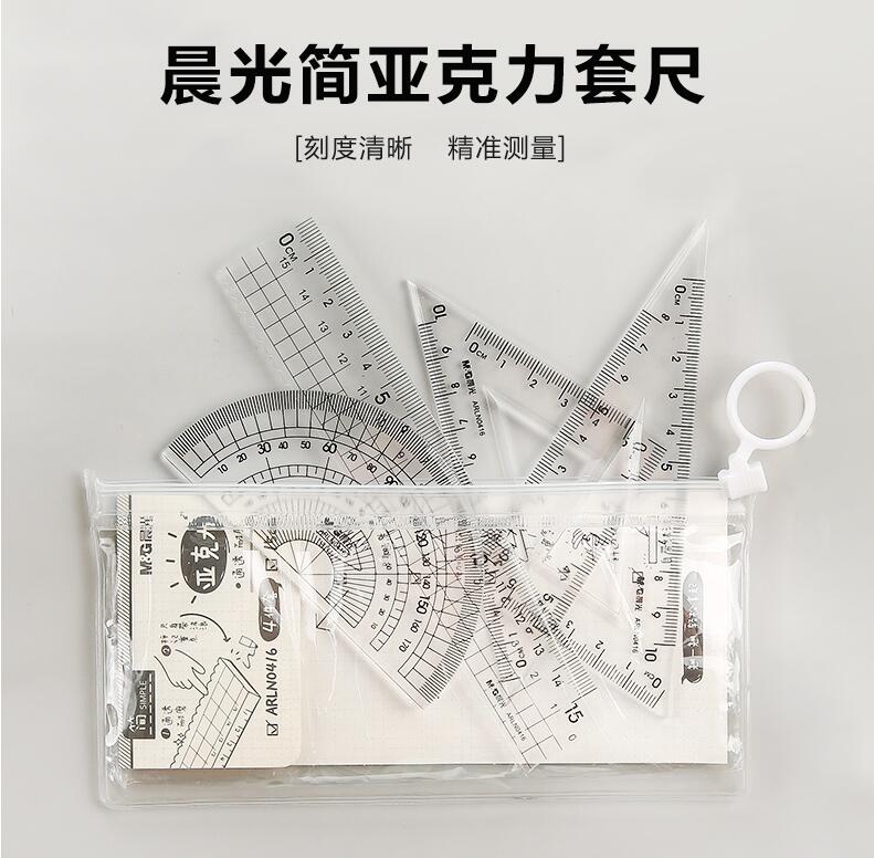 晨光文具 透明套尺 亞克力四件套15cm直尺三角板量角器學(xué)生用考試?yán)L畫專用制圖測量隨身便攜多功能幾何工具